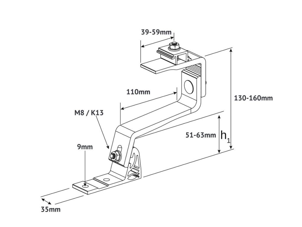Hliníkový hák GTA 2 fischer Solar-fix je nevyhnutný prvok na upevnenie solárnych panelov na šikmé strechy s rovnou pálenou škridlou. Hák GTA 2 je výškovo nastaviteľný na dvoch miestach a dokáže sa prispôsobiť širokej škále profilovaných pálených strešných škridiel. Hliníkový hák GTA-2 sa dokáže prispôsobiť výške spodnej aj hornej škridle. Telo háku je z hliníka a priložený spojovací materiál na upevnenie nosníkov Solar je z nerezovej ocele A2-70. K nosnej konštrukcii strechy sa upevňuje spravidla pomocou skrutiek do dreva PowerFast II.
