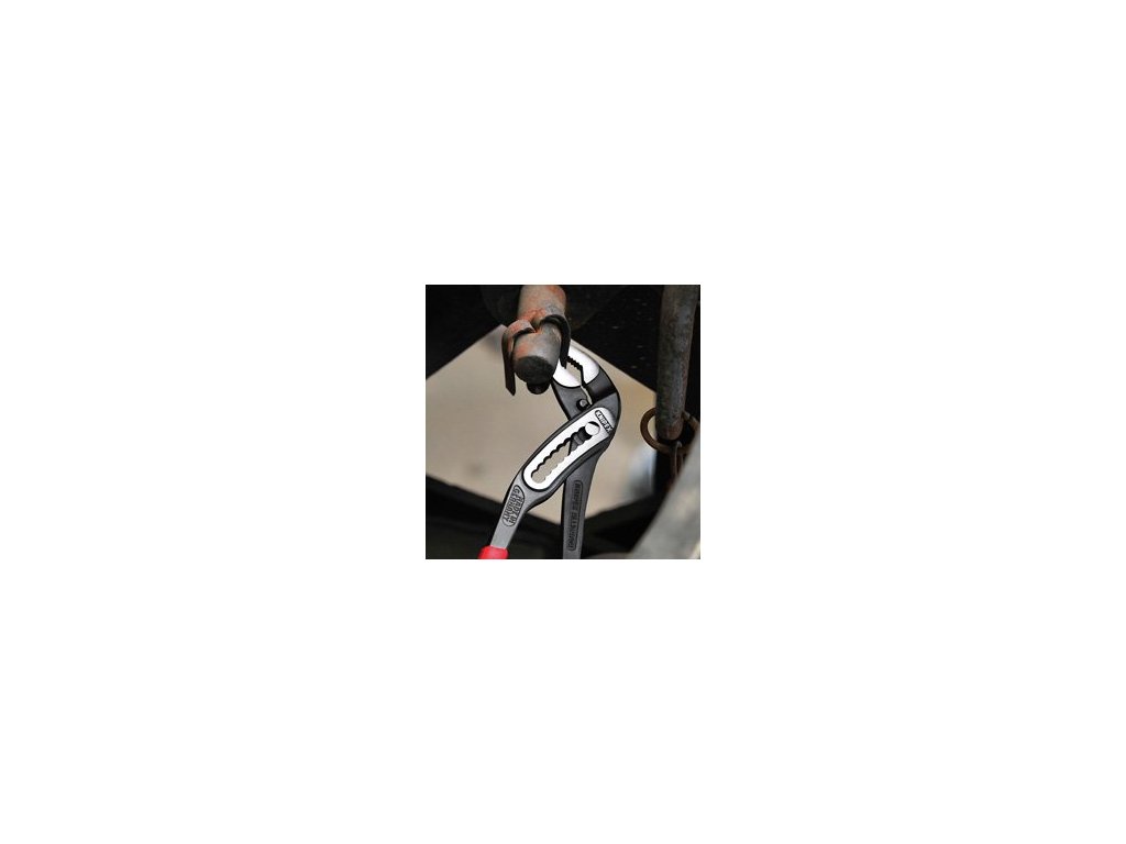 • Viac výkonu a komfortu s porovnaním s bežnými klieštami na vodné čerpadlá: 9stupňové nastavenie s rozšíreným úchopom o 30 %. • Lahký prístup vďaka veľmi štíhlému konštrukčnému tvaru v celej oblasti hlavy a kĺbu • Samosvorné na trubkách a maticiach, práca šetrí sily • Plochy čelustí so špeciálnymi zubami, tvrdost zubov asi 61 HRC: trvalo spoľahlivo uchopujú vďaka vysokej odolnosti proti opotrebovaniu • Posuvný prechodný čap kĺbu: vysoká stabilita vďaka dvojitému vedeniu • Kryt chrániaci prsty uživateľa pred pricviknutím • Chromvanadová elektrooceľ, kovaná, kalená v oleji v niekoľkých fázachDodatočné parametre