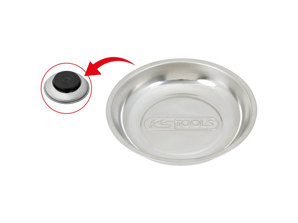 Tvar: okrúhly Materiál 1: nerezová oceľ priemer v mm: 150,0 Hmotnosť v g: 430 s magnetom na odkladanie skrutiek a iných kovových drobných súčiastok magnetická strana s plastovým povrstvením nerezová oceľDodatočné parametre