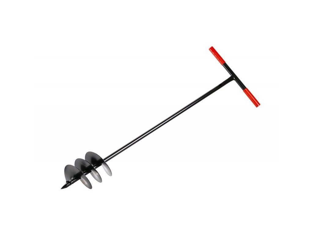 vrták pôdny pre ľahké usadenie stĺpikov, drevených ohradníkov, sadbu stromčekov, ai. rozmery: priemer 110 mm, dĺžka skrutkovice 30 cm, dĺžka páky 42 cm, celková dĺžka 120 cm