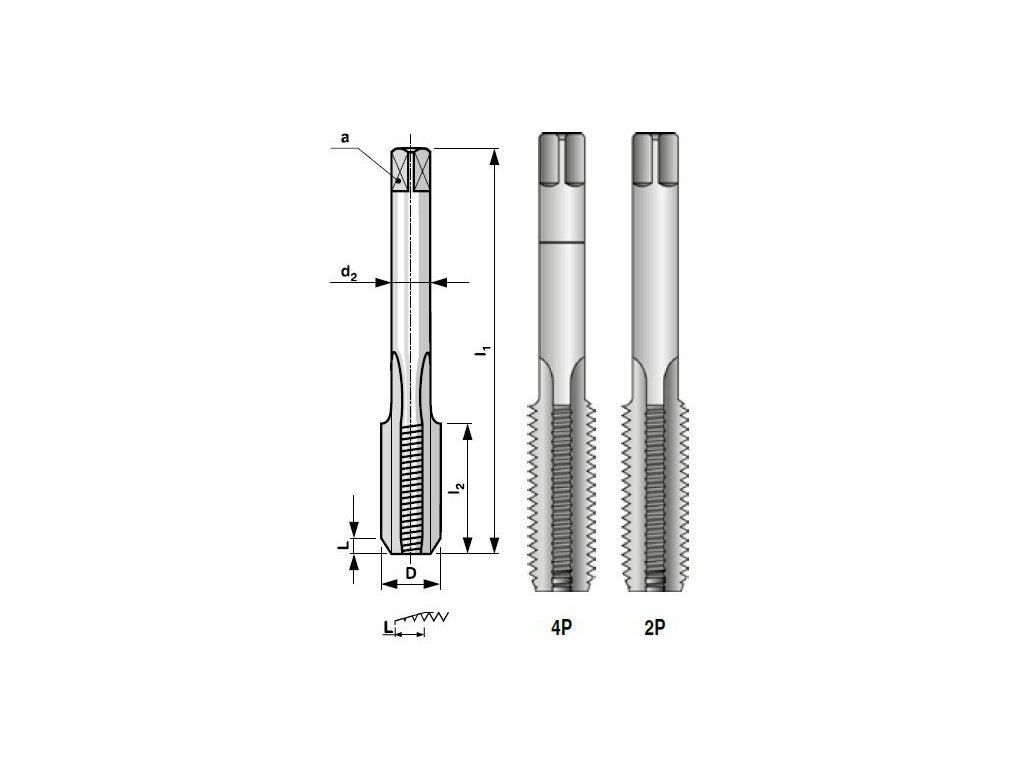 Typ závitu: MF - jemný metrický závit Norma: 223010 Materiál: HSS - výkonná rýchlorezná oceľ Lícovanie: 2N Počet kusov v sade: 2 Rozmer závitu: D = 10 mm Stúpanie závitu: P = 1,25 mm Celková dĺžka: l1 = 56 mm Dĺžka reznej časti: l2 = 18 mm Priemer drieku: d2 = 7,10 mm Rozmer štvorhranu: a = 5,6 mm Priemer vyvŕtanej diery: ⌀ = 8,80 mm Uhol: 60 ° Odporúčané použitie: Konstrukčné ocele nelegované s pevnosťou do 500 MPa, nízko a stredne legované ocele do 800 MPa, nástrojové ocele do 500 MPa, nástrojové ocele legované do 900 MPa,temperované zliatiny, a termoplasty, uhlíkové ocele na odliatky s pevnosťou do 750 MPa, šedé liatiny, tvárne liatiny, bronz, mosadz s krátkou drobivou trieskou, mosadz s dlhou celistvou trieskou, zinok a jeho zliatiny, reaktoplasty a duroplasty. Možné použitie: Hliník legovaný.Dodatočné parametre
